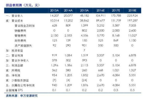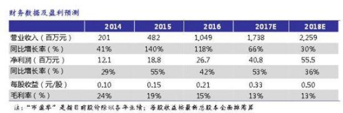 维持此前盈利预测。预计16-18年营收10.49/17.38/22.59亿,CAGR为47%,CAGR为44%。不考虑增发,16-18年EPS为0.2/0.3/0.5元,对应4月19日收盘价的PE为36/23/15X。